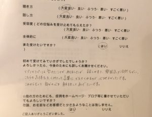 新規のお客様がヒプノセラピーを受けにお越し頂き、セッションのご感想を頂きました(^^)