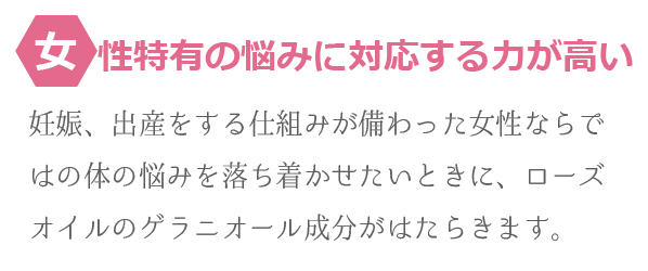 100%オーガニックローズオイルを、女性ホルモンを活性化する4ヶ所の部分と、今気になる部分(肩こりが酷いなら肩・腰痛持ちなら腰など)に塗り、血行促進力が早いので経皮吸収し身体の中に素早く入り、ローズの成分が良い働きをしてくれます。